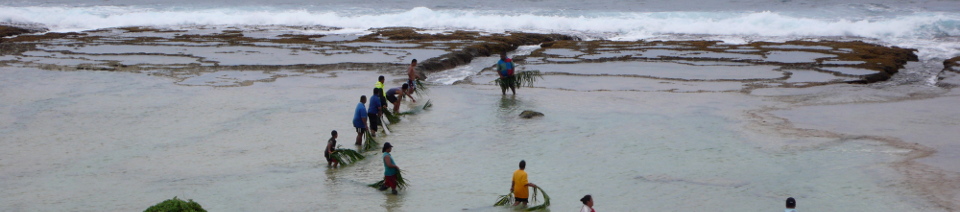 Fishing on Atiu is not typical of tropical islands. Atiu island is old as far as tropical islands go. The surrounding reef has developed almost to its limit and the ocean deepens rapidly from the reefs edge. It is thus possible to catch deep sea fish close to shore. Atiuan fishermen stand on the reef edge casting for fish in the ocean.